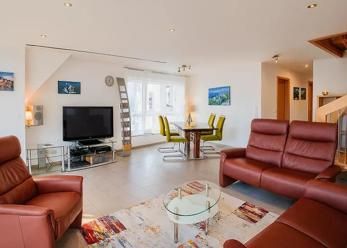تشتمل Exklusiv Maisonette Weitblick - Nah Am See على الشرفة ومنطقة الجلوس المفروشة بالصالون ومكتب الكتابة، فضلاً عن مرافق ترفيهية مثل جهاز التلفزيون والواي-فاي. يشتمل الحمام على حوض الاستحمام والدوش، فضلاً عن ملاءات الحمام والمناشف.